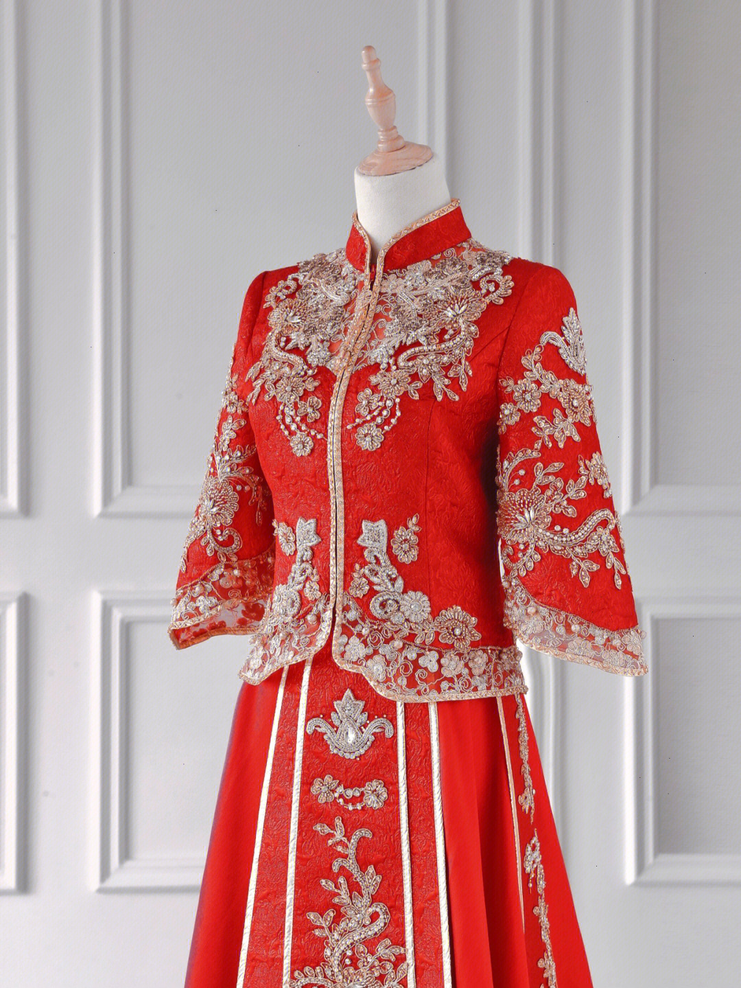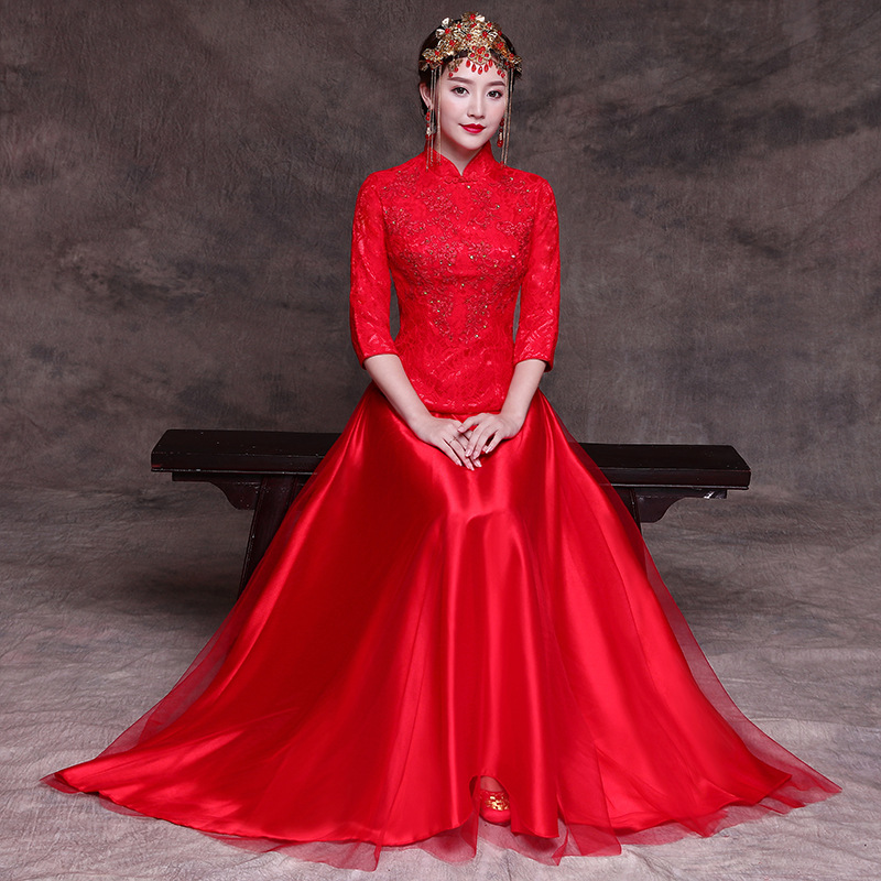 1、时尚改良款红色秀田礼服