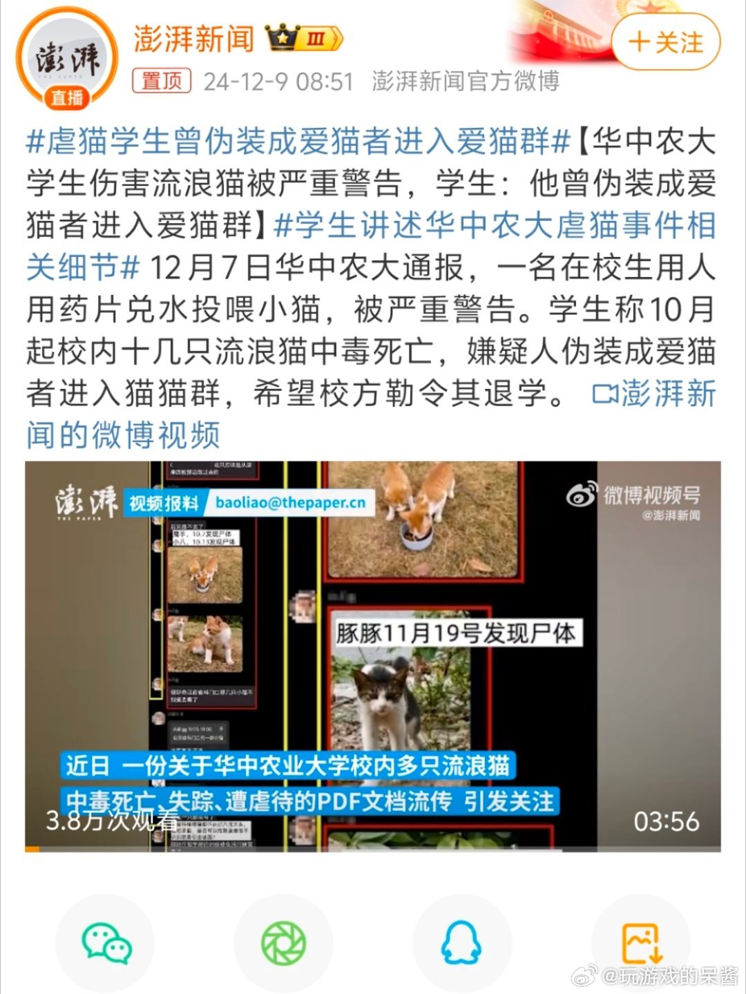 据报道,这些最新的虐鼠视频中,小鼠在极不人道的条件下遭受折磨,这些无辜的小生命被虐待、伤害,甚至被残忍杀害,而这些行为的背后,是拍摄者的冷漠和恶意,他们将这种行为当做娱乐,以此获取关注和点赞。